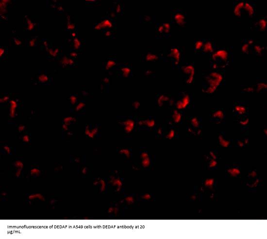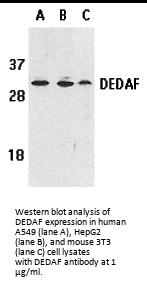 DEDAF antibody was raised against a 14 amino acid peptide near the carboxy terminus of human DEDAF.