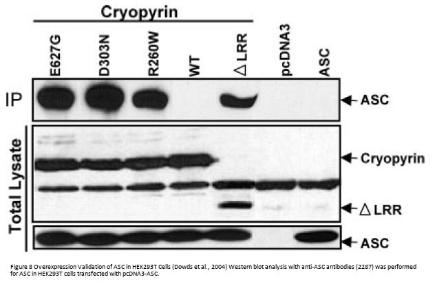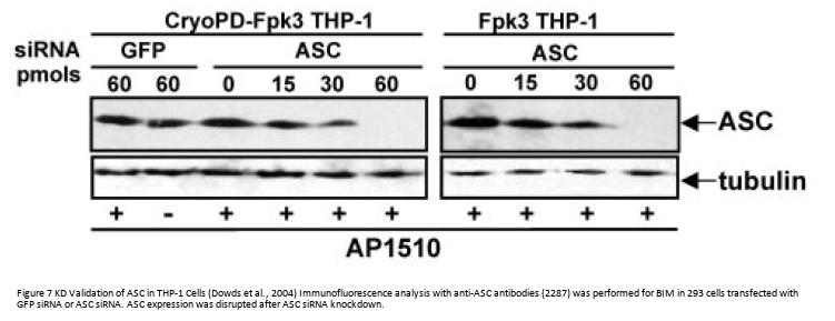 Anti-ASC antibody (2287) was raised against a peptide corresponding to 14 amino acids near the carboxy terminus of human ASC.