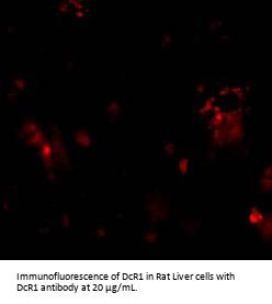 DcR1 antibody can be used for detection of DcR1 by Western blot at 1 μ g/mL. An approximate 65 kDa band can be detected. Antibody can also be used for immunoflourescence starting at 10 μ g/mL. For immunofluorescence start at 20 μ g/mL.