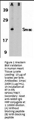 Anti-Smac antibody (2409) was raised against a peptide corresponding to 15 amino acids near the carboxy terminus of human Smac.