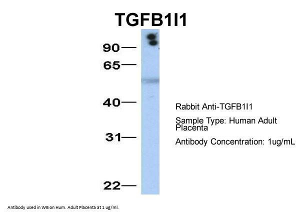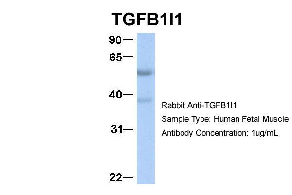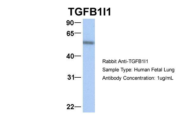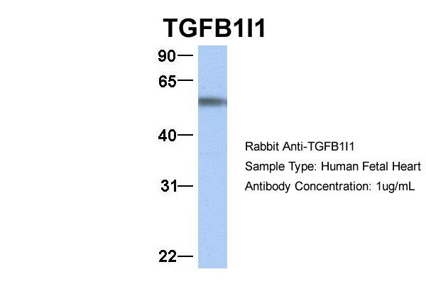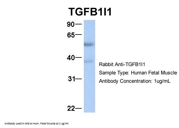 TGFB1I1 antibody can be used for detection of TGFB1I1 by ELISA at 1:312500. TGFB1I1 antibody can be used for detection of TGFB1I1 by western blot at 1 μ g/mL, and HRP conjugated secondary antibody should be diluted 1:50, 000 - 100, 000.