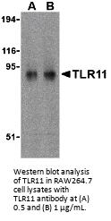 TLR11 antibody was raised against a peptide corresponding to 15 amino acids near the carboxy terminus of mouse TLR11.