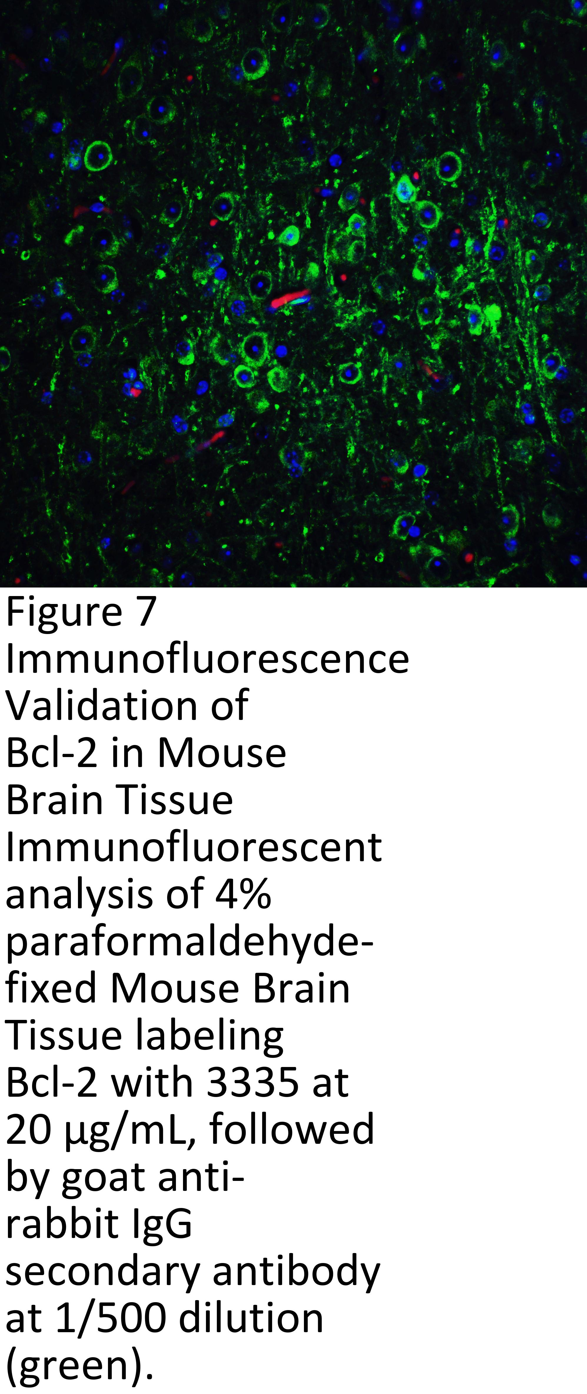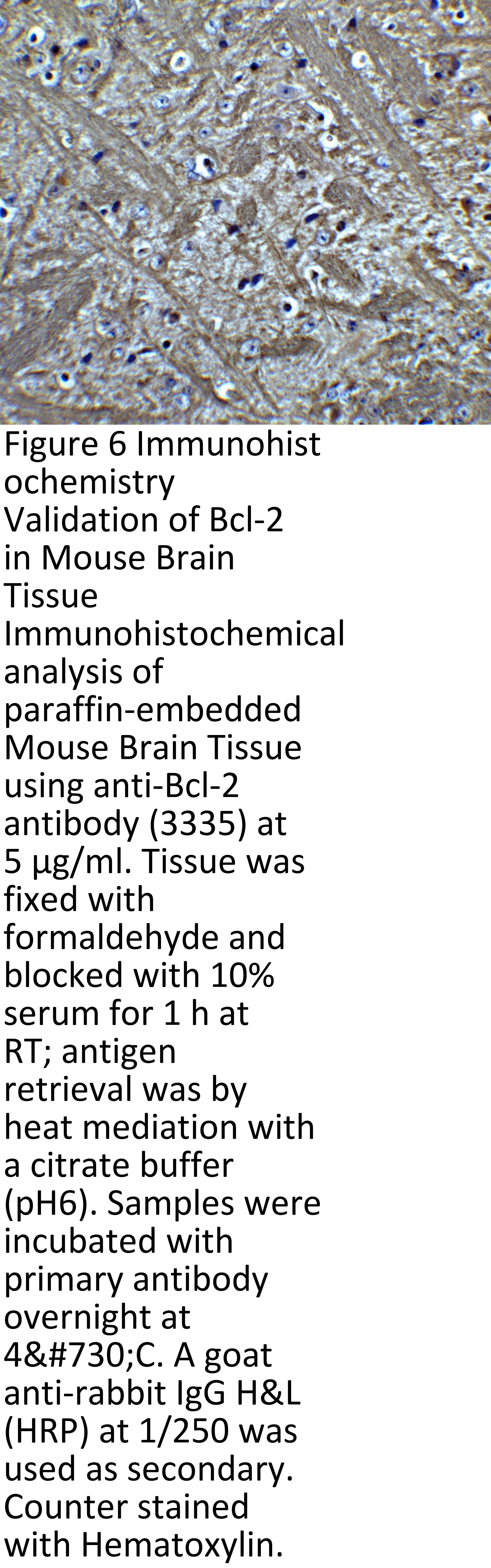 Anti-Bcl-2 antibody (3335) was raised against a peptide corresponding to 15 amino acids near the amino terminus of human Bcl-2.