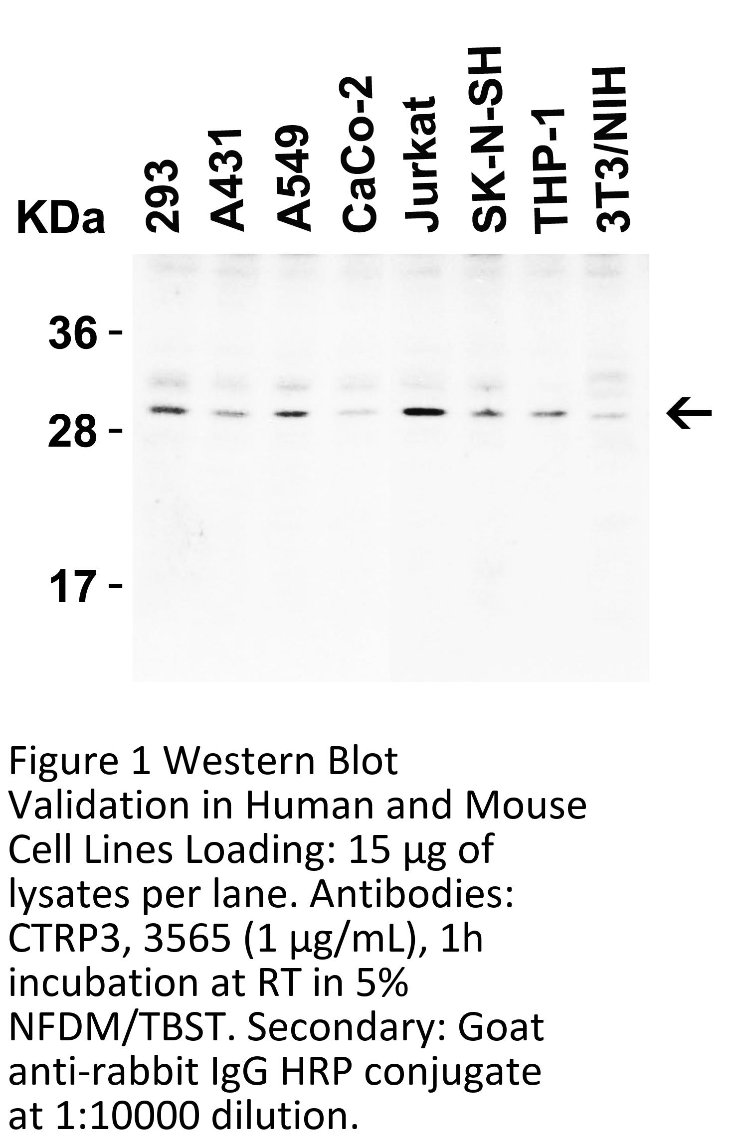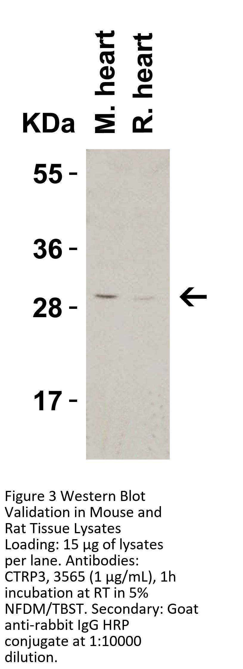 Recombinant Protein Test (Figure 2): Anti-CTRP3 antibodies (3565) detected human CTRP3 recombinant protein.