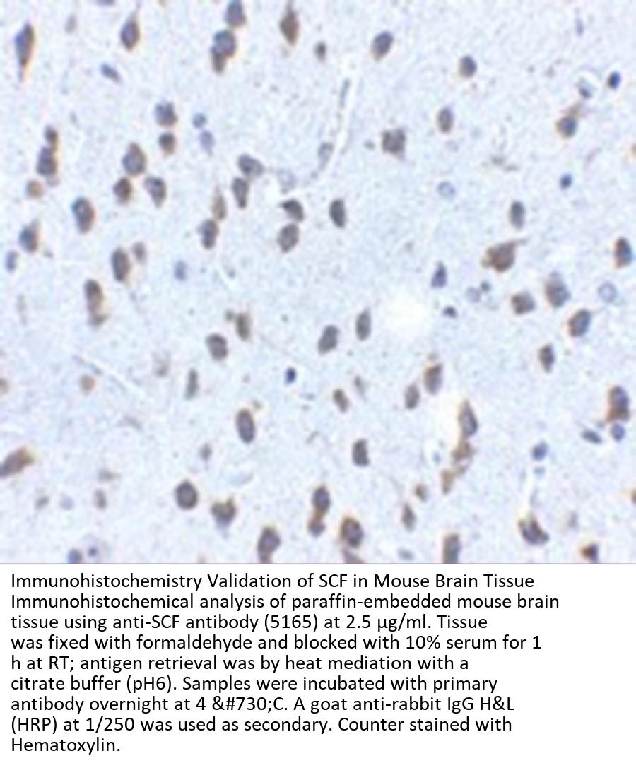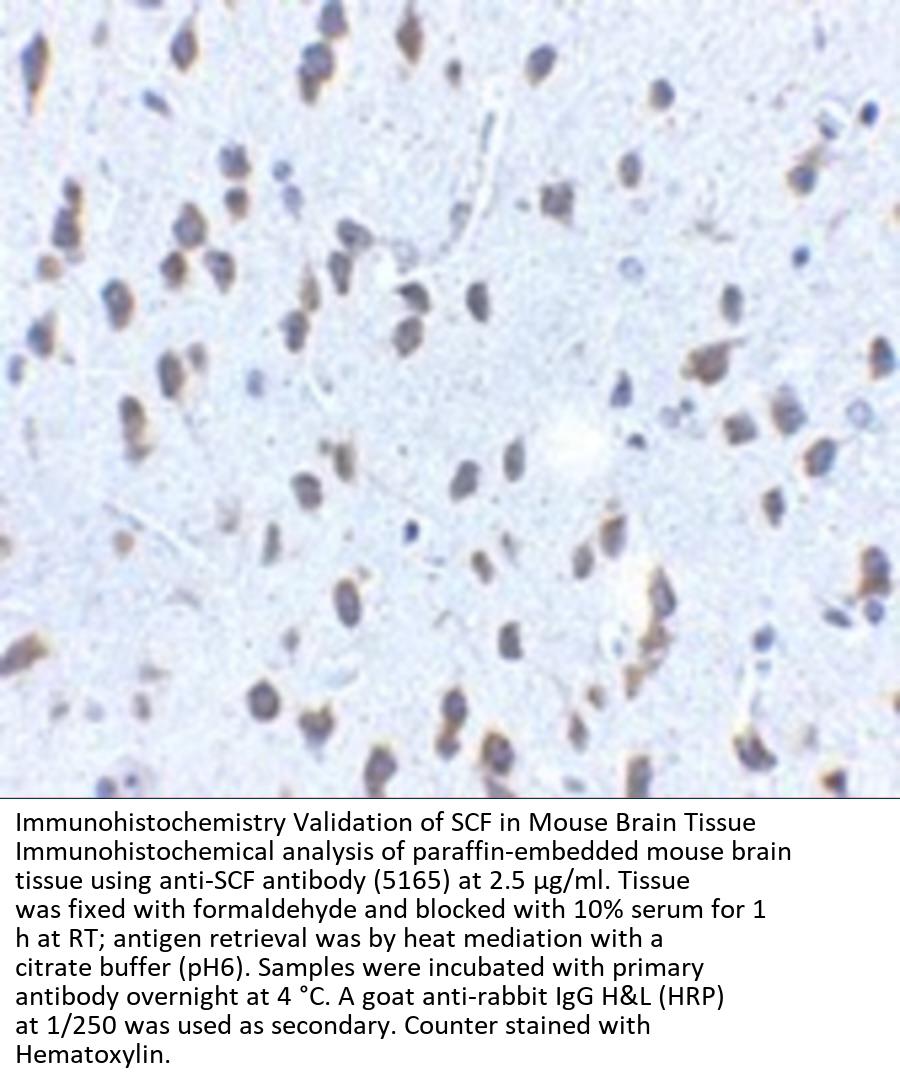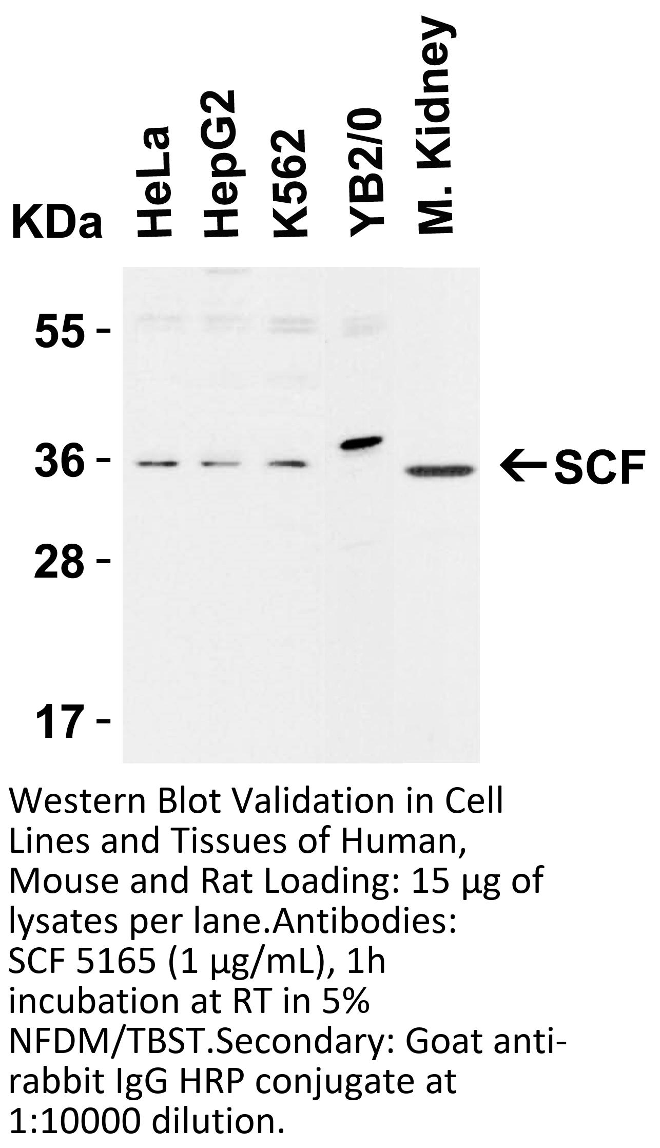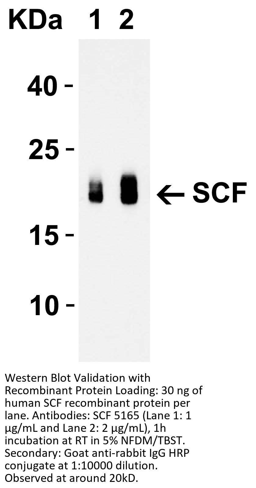 Recombinant Protein Test (Figure 2): Anti-SCF antibodies (5165) detected human SCF recombinant protein at different concentrations.
