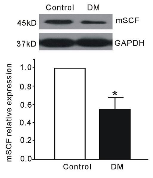 Regulated expression validation (Figure 7 & 8): SCF expression detected by anti-SCF antibodies (5165) was up-regulated by angiotensin II (Ang II) treatment and was down-regulated by two inhibitors (Figure 7) or CNP treatment (Figure 8).