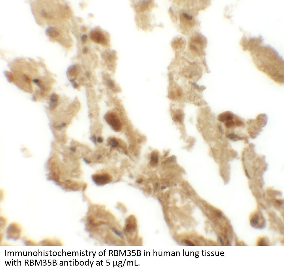RBM35B antibody was raised against a 17 amino acid synthetic peptide near the carboxy terminus of human RBM35B.
