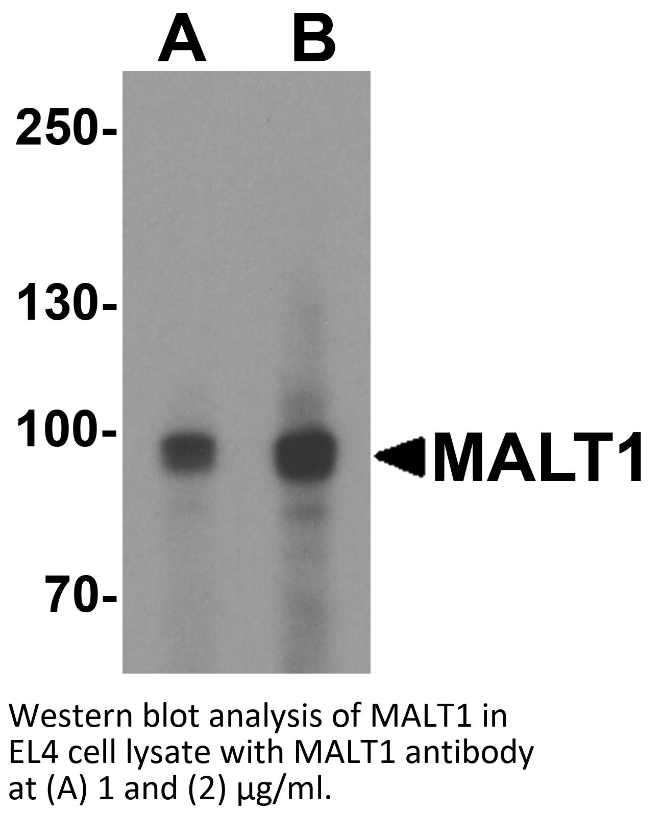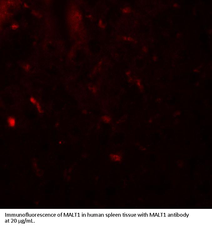 MALT1 antibody was raised against an 18 amino acid peptide near the carboxy terminus of human MALT1.