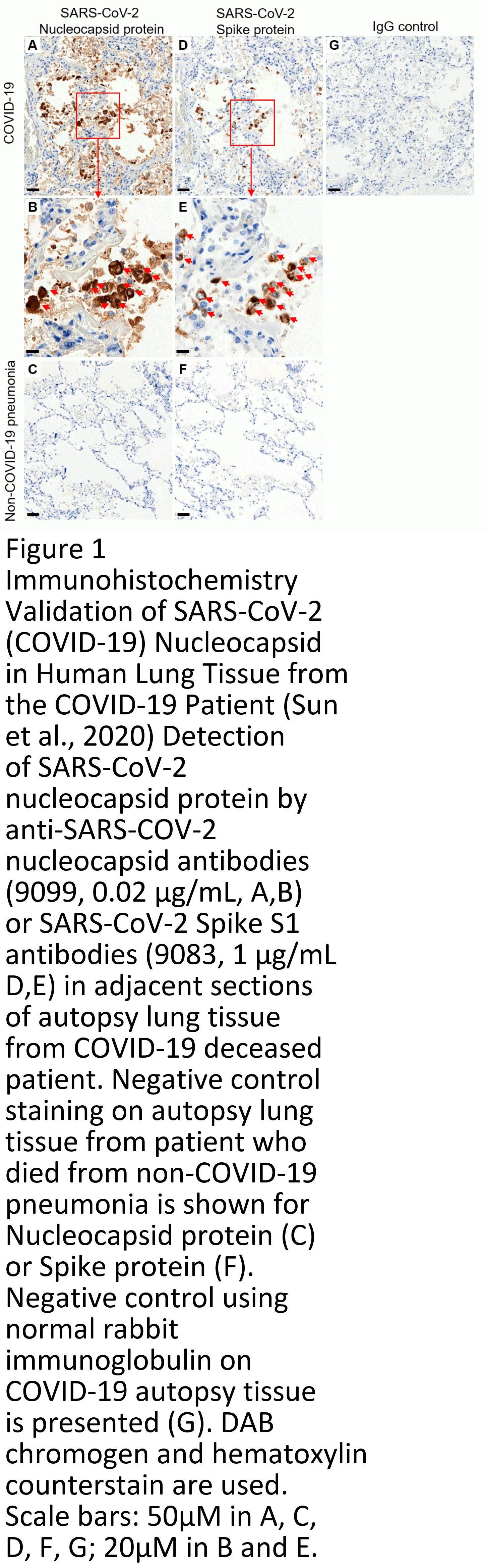 Sun Y, Ge L, Rau MJ, Patton MD, Gallan AJ, Felix JC, Rui H. Sensitive and specific immunohistochemistry protocols for detection of SARS-CoV-2 nucleocapsid and spike proteins in formalin-fixed, paraffin-embedded COVID-19 patient tissues. ProtocolExchange, 16 July 2020; DOI:10.21203/rs.3.pex-1011/v1