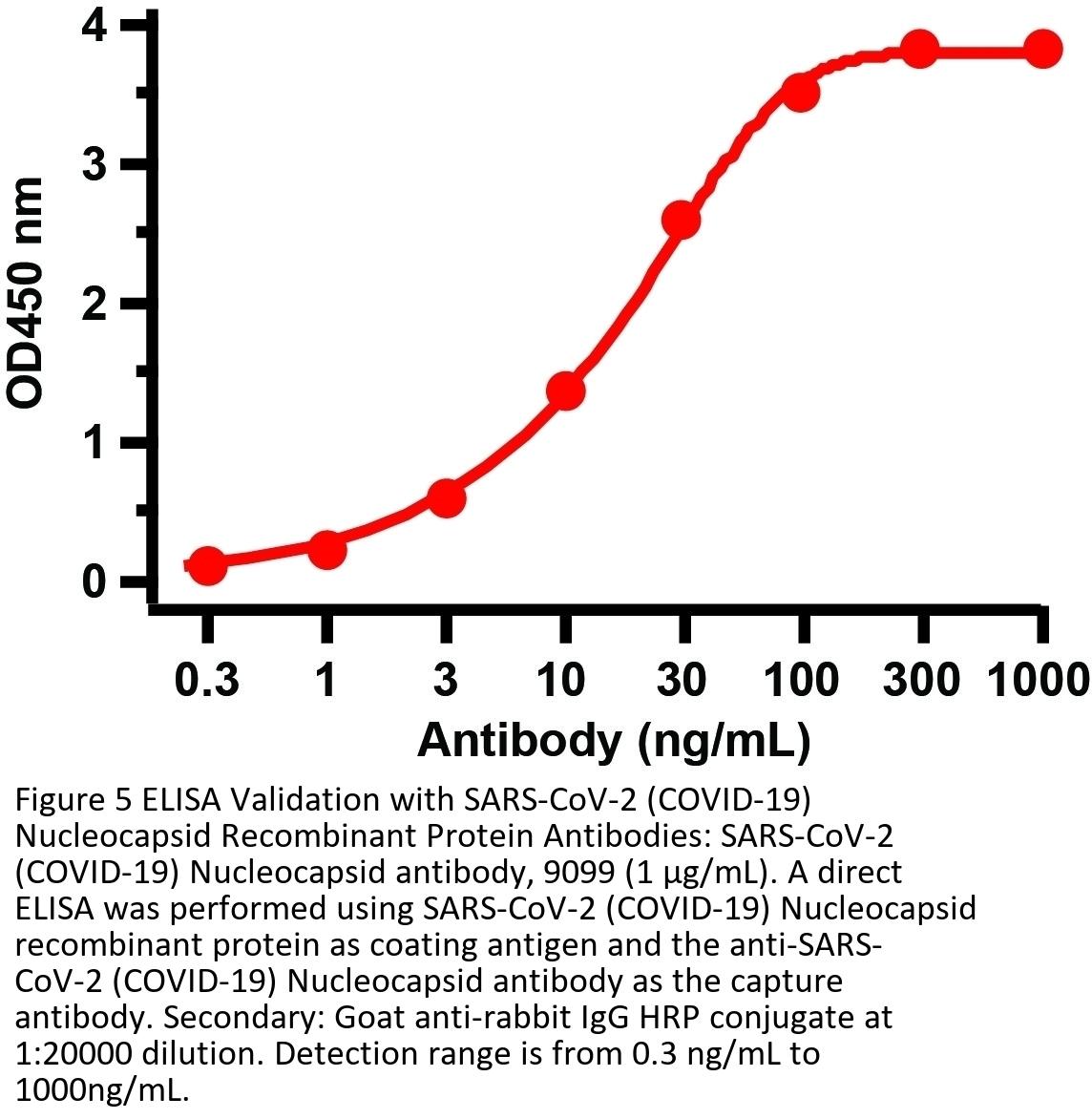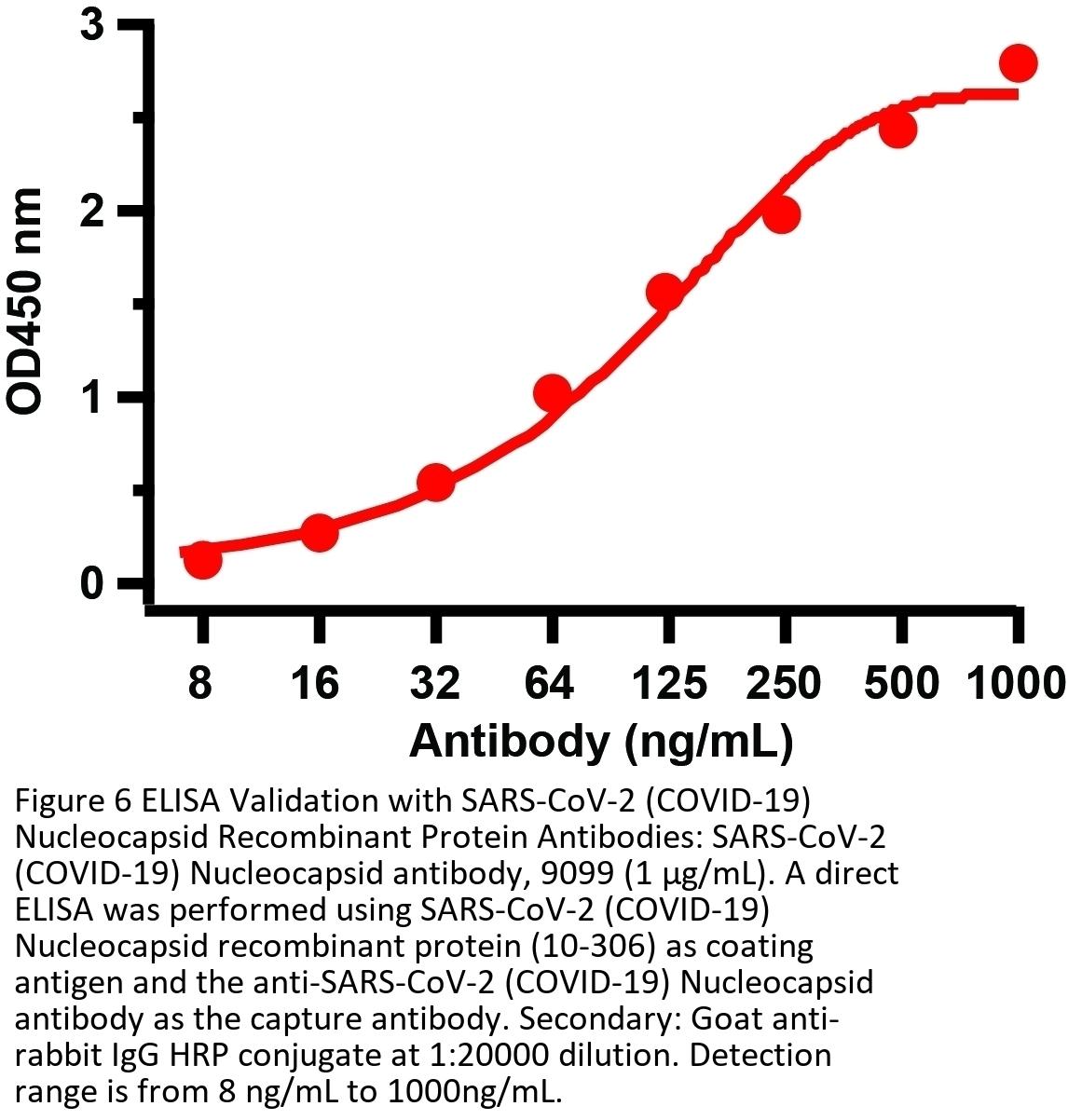 SARS-CoV-2 (COVID-19) Nucleocapsid antibody can be used for the detection of SARS-CoV-2 (COVID-19) Nucleocapsid protein in ELISA. It will detect 4 ng of free peptide at 1 μ g/mL. All other applications and species not yet tested.