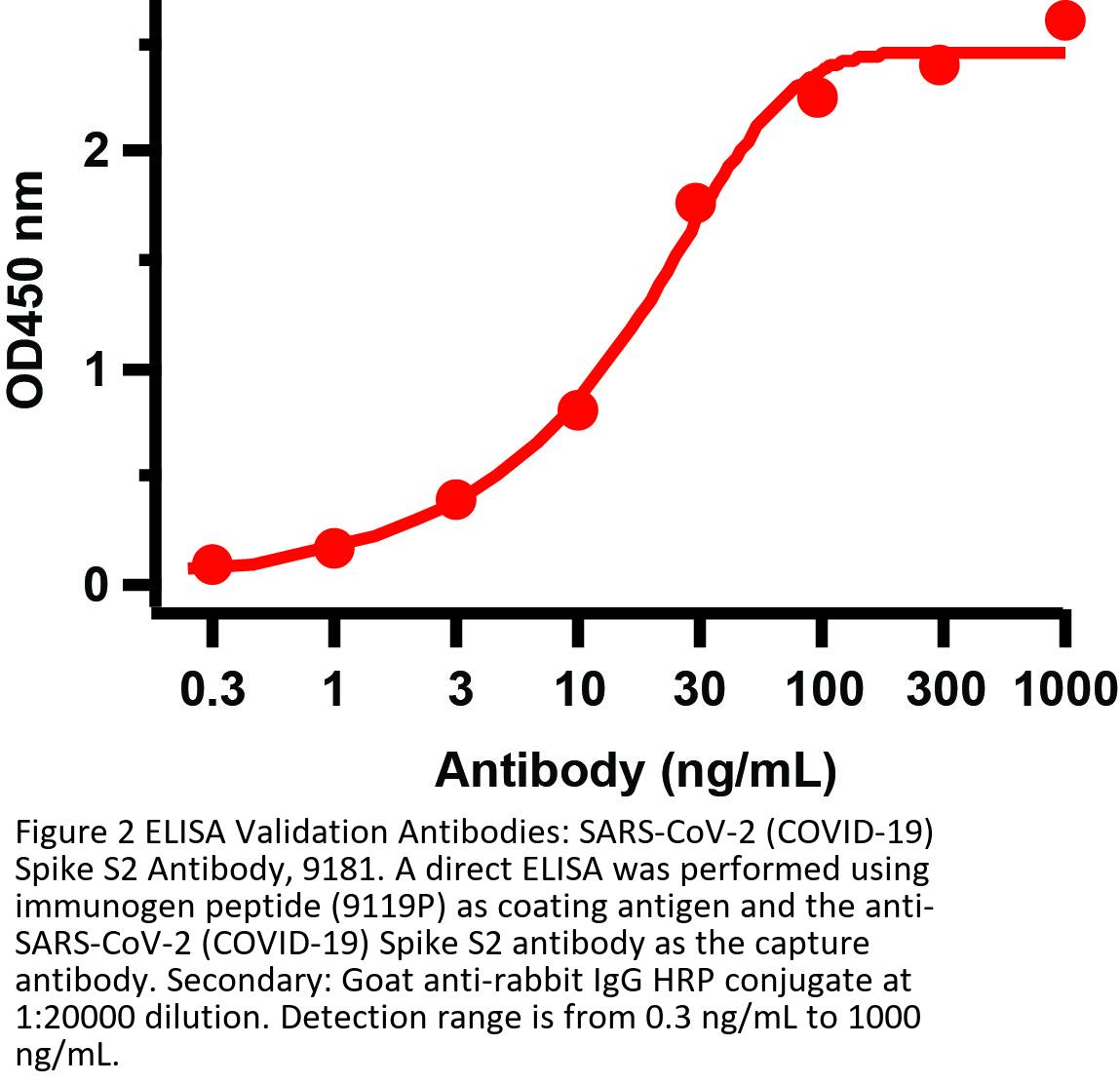 Antibody validated: SARS-CoV-2 (COVID-19) Spike antibody can be used for the detection of SARS-CoV-2 (COVID-19) Spike protein in WB. It will detect 2 ng of free peptide at 1 μ g/mL. All other applications and species not yet tested.