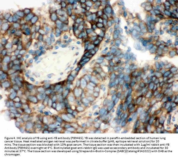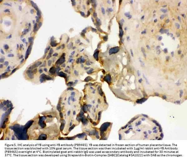 YBX1 (Y box binding protein 1), commonly referred to as YB-1 by researchers, is a human protein. YB1 binding has an absolute requirement for the CCAAT box and relative specificity for the Y box. It has a molecular mass of 35, 414 and contains 18% basic residues and putative nuclear localization signals. The YBX1 gene is mapped on 1p34.2. Ybx1 was highly expressed in mouse erythroid myeloid lymphoid clone-1 (EML), a hematopoietic precursor cell line, but that it was downregulated in myeloid progenitors and in Gmcsf-treated EML cells during myeloid differentiation. Ybx1 was expressed at high levels in myeloid leukemic cells at different developmental stages. Knockdown of YBX1 in a human leukemic cell line inhibited proliferation ability, induced apoptosis, and induced megakaryocytic differentiation in response to arsenic trioxide treatment. YBX1 is downregulated during myeloid differentiation and aberrant YBX1 expression in leukemic cells may contribute to leukemia development by blocking differentiation.