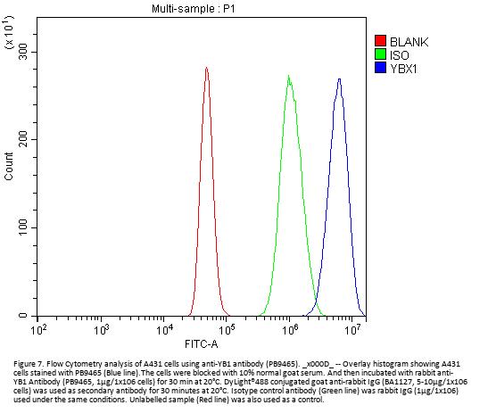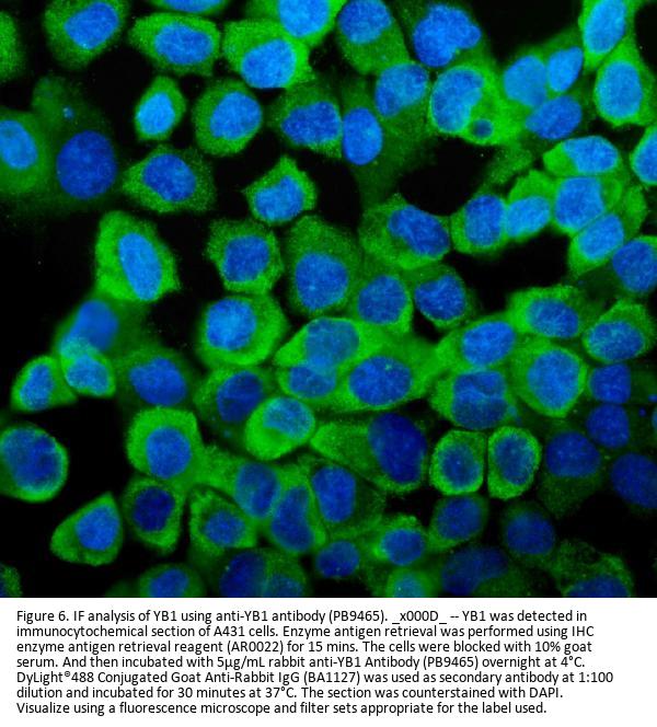 Boster Bio Anti-YB1/YBX1 Antibody Picoband® catalog # PB9465. Tested in Flow Cytometry, IF, IHC, IHC-F, ICC, WB applications. This antibody reacts with Human, Mouse, Rat. The brand Picoband indicates this is a premium antibody that guarantees superior quality, high affinity, and strong signals with minimal background in Western blot applications. Only our best-performing antibodies are designated as Picoband, ensuring unmatched performance.