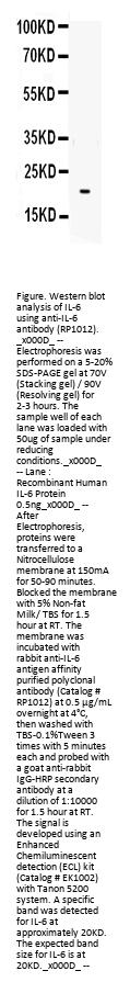 Boster Bio Anti-Interleukin-6 IL6 Antibody catalog # RP1012. Tested in WB applications. This antibody reacts with Human. The brand Picoband indicates this is a premium antibody that guarantees superior quality, high affinity, and strong signals with minimal background in Western blot applications. Only our best-performing antibodies are designated as Picoband, ensuring unmatched performance.