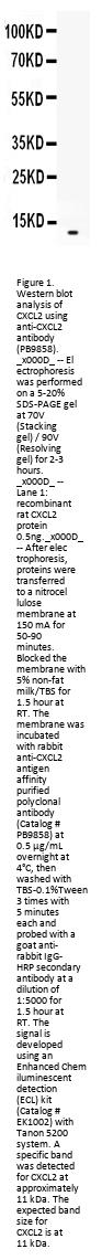 Boster Bio Anti-CXCL2 Antibody Picoband® catalog # PB9858. Tested in ELISA, WB applications. This antibody reacts with Mouse, Rat. The brand Picoband indicates this is a premium antibody that guarantees superior quality, high affinity, and strong signals with minimal background in Western blot applications. Only our best-performing antibodies are designated as Picoband, ensuring unmatched performance.