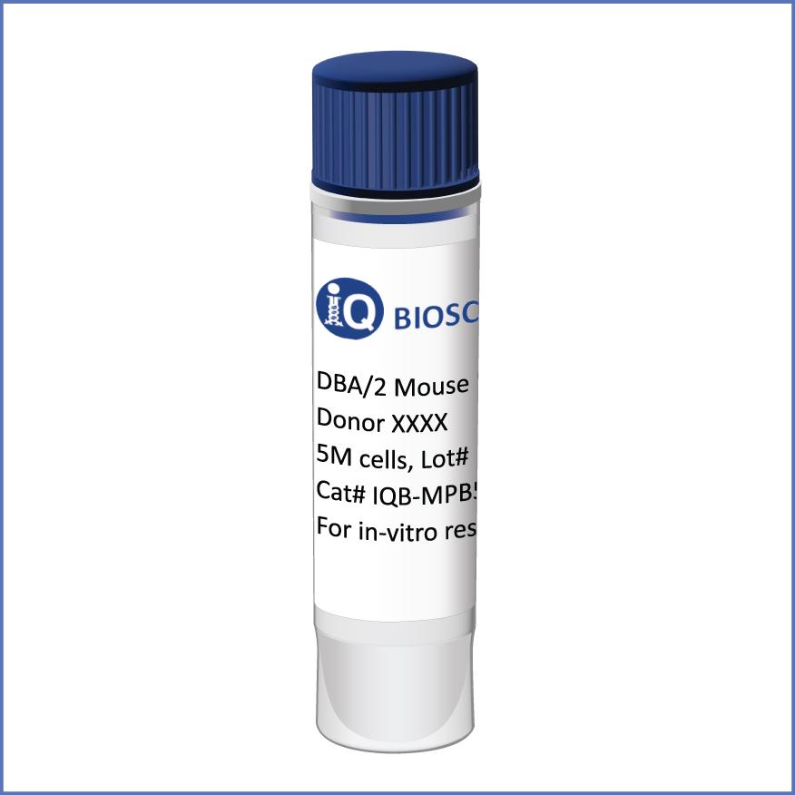High-quality, high-viability (> 80%) peripheral blood mononuclear cells (PBMCs) from the DBA/2 mouse, a widely-used inbred mouse strain. Used for a wide variety of immunology-based applications, including in-vitro immunoassays and ex-vivo applications. All orders come with an iQ Certificate of Analysis.
