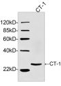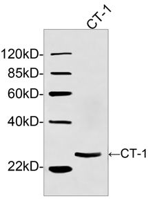 Cardiotrophin-1 (CT-1) is a member of the cytokine family which also includes IL-6, IL-11, leukemia inhibitory factor (LIF), oncostatin M (OSM), and ciliary neurotrophic factor (CNTF). It was originally isolated based on its ability to induce cardiac myocyte hypertrophy, in vitro . CT-1 has since been shown to be a pleiotrophic cytokine with overlapping actions with other IL-6 family members on a variety of cell types. Human CT-1 encodes a 201 amino acid (aa) residue protein that lacks a hydrophobic signal peptide. CT-1 is highly expressed in heart, skeletal muscle, liver, lung, and kidney. Lower level of CT-1 expression is also seen in testis and brain. CT-1 initiates downstream signaling pathways through the heterodimerization of gp130 and the LIF receptor beta subunit. A third alpha receptor subunit has recently been implicated in the receptor complex. GenScript Human CT-1 Antibody (1C12C11), mAb, Mouse, is produced from the hybridoma resulting from fusion of Sp2/0 myeloma and lymphocytes obtained from mouse immunized with purified full length recombinant human CT-1 protein (Swiss Prot: Q16619).