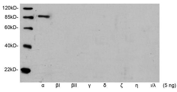 Specificity GenScript Rabbit Anti-PKCα, Polyclonal Antibody detects endogenous levels of total PKCα, protein. It does not cross-react with endogenous levels of other PKC isoforms.