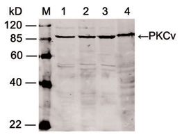 GenScript Rabbit Anti-PKCν, Polyclonal Antibody detects endogenous human and mouse PKCν, protein.