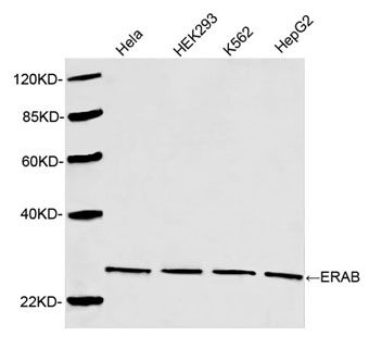 GenScript ERAB Antibody, pAb, Rabbit detects endogenous levels of human ERAB protein.