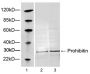 Synthetic peptide (KLH-coupled) derived from within residues 100-150 of human prohibitin (Swiss Prot: P35232).