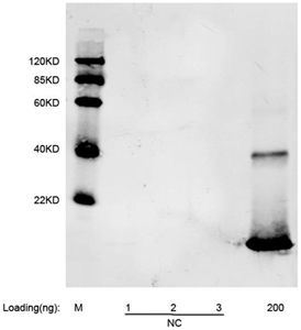 0.5 mg/ml, lyophilized with PBS, pH 7.4, containing 0.02% sodium azide