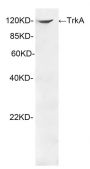 TrkA is one member of Trk receptor tyrosine kinase family that consists of TrkA, TrkB and TrkC. TrkA plays an important role in proliferation and maturation of the nervous system. TrkA phosphorylation at Tyr490 is required for Shc association and activation of the Ras-MAP kinase cascade. TrkA kinase activity depends on phosphorylation of residues Tyr674/675 within catalytic domain. TrkA signals growth arrest and differentiation of cells originating from the neural crest, and can serve as a prognostic marker in neuroblastomas. GenScript, Rabbit Anti-TrkA Polyclonal Antibody, is developed in rabbit using a KLH-coupled synthetic peptide from C-terminal of human TrkA (Swiss Prot: P04629).