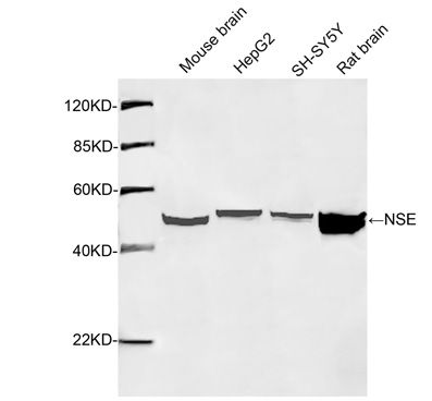 GenScript Rabbit Anti-NSE Polyclonal Antibody detects endogenous levels of human, mouse, and rat NSE protein. It may cross-reacts with alpha enolase and beta enolase according to sequence homology.