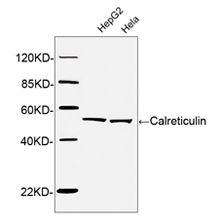 GenScript Rabbit Anti-Calreticulin Polyclonal Antibody detects endogenous levels of human Calreticulin. It is predicted to react with mouse and rat Calreticulin according to sequence homology. Positive Control: Hela and HepG2