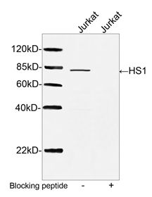 GenScript HS1 Antibody, pAb, Rabbit detects endogenous levels of human HS1. Positive Control: Jurkat