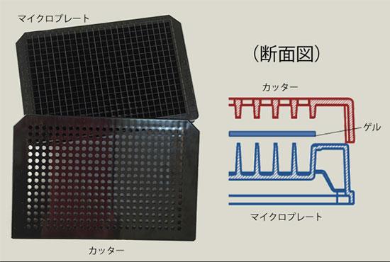 SAINOME® is a useful analysis tool for proteome analysis and DEG assay (Diced Electrophoresis Gel assay). The gel after electrophoresis can be dispensed into a 384-well microplate and used for reaction or measurement using a microplate reader.