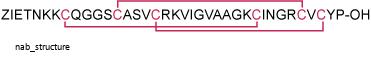Disulfide bonds between: Cys8-Cys28, Cys13-Cys33, and Cys17-Cys35