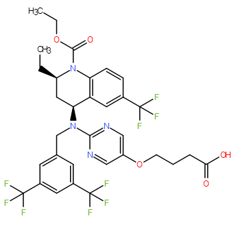 Smiles O=C(O)CCCOC1=CN=C(N(CC2=CC(C(F)(F)F)=CC(C(F)(F)F)=C2)[C@H]3C[C@@H](CC)N(C(OCC)=O)C4=C3C=C(C(F)(F)F)C=C4)N=C1
