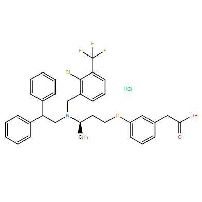 Smiles C[C@H](CCOC1=CC=CC(=C1)CC(=O)O)N(CC2=C(C(=CC=C2)C(F)(F)F)Cl)CC(C3=CC=CC=C3)C4=CC=CC=C4.Cl