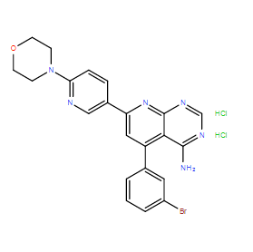Smiles BrC1=CC=CC(=C1)C1=CC(C2=CN=C(C=C2)N2CCOCC2)=NC2C1=C(N)N=CN=2.Cl.Cl