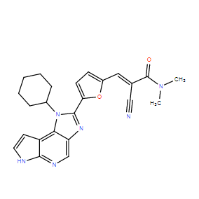 Smiles CN(C)C(=O)/C(=C/C1=CC=C(O1)C2=NC3=CN=C4C(=C3N2C5CCCCC5)C=CN4)/C#N