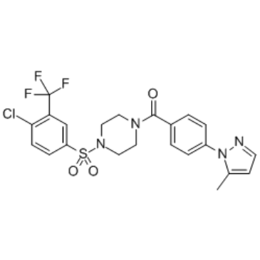 Smiles O=C(N1CCN(S(=O)(C2=CC=C(Cl)C(C(F)(F)F)=C2)=O)CC1)C3=CC=C(N4N=CC=C4C)C=C3
