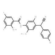 Smiles ClC1=CC(NC(=O)C2C=C(I)C=C(I)C=2O)=C(C)C=C1C(C1C=CC(Cl)=CC=1)C#N