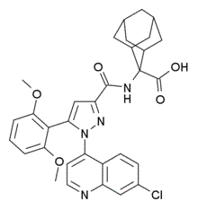 Smiles COC1=C(C(OC)=CC=C1)C2N(N=C(C=2)C(=O)NC3(C(O)=O)C4CC5CC3CC(C5)C4)C6C7C(=CC(Cl)=CC=7)N=CC=6
