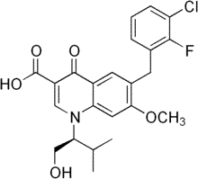 Smiles ClC1=C([H])C([H])=C([H])C(=C1F)C([H])([H])C1C(=C([H])C2=C(C=1[H])C(C(C(=O)O[H])=C([H])N2[C@]([H])(C([H])([H])O[H])C([H])(C([H])([H])[H])C([H])([H])[H])=O)OC([H])([H])[H]