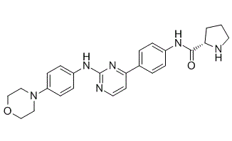 Smiles C1C[C@H](NC1)C(=O)NC2=CC=C(C=C2)C3=NC(=NC=C3)NC4=CC=C(C=C4)N5CCOCC5