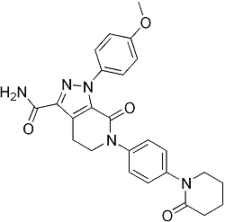 Smiles NC(C1=NN(C2=C1CCN(C2=O)C3=CC=C(C=C3)N4CCCCC4=O)C5=CC=C(C=C5)OC)=O