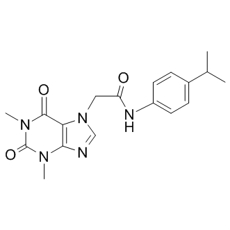 HC-030031 is a selective TRPA1 channel blocker that antagonizes AITC- and formalin-evoked calcium influx with IC50 of 6.2 μM and 5.3 μM respectively.