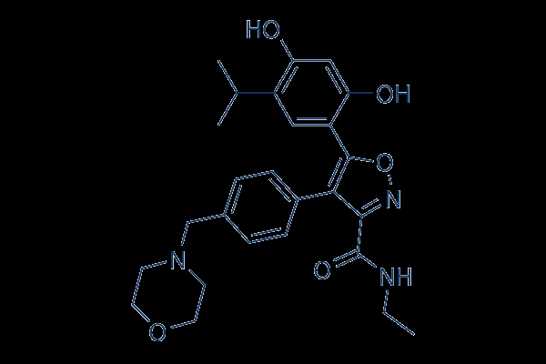 AUY922 (NVP-AUY922) is a highly potent HSP90 inhibitor for HSP90α/β with IC50 of 13 nM /21 nM, weaker potency against the HSP90 family members GRP94 and TRAP-1, exhibits the tightest binding of any small-molecule HSP90 ligand. Phase 1/2.