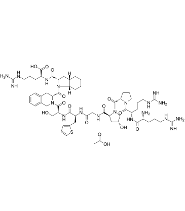 HOE-140 (Icatibant) is a potent and selective bradykinin B2 receptor antagonist (pA2 = 9.04). Also inhibits aminopeptidase N (Ki = 9.1 μM).