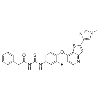 Smiles O=C(CC1=CC=CC=C1)NC(NC2=CC=C(C(F)=C2)OC3=C4C(C=C(S4)C5=CN(C=N5)C)=NC=C3)=S