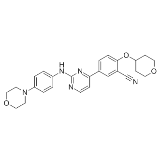 Smiles O1C([H])([H])C([H])([H])C([H])(C([H])([H])C1([H])[H])OC1C([H])=C([H])C(C2C([H])=C([H])N=C(N=2)N([H])C2C([H])=C([H])C(=C([H])C=2[H])N2C([H])([H])C([H])([H])OC([H])([H])C2([H])[H])=C([H])C=1C#N
