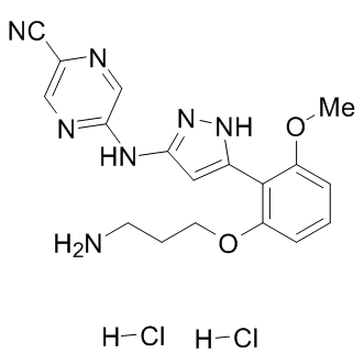Smiles NCCCOC(C=CC=C1OC)=C1C2=CC(NC3=NC=C(C#N)N=C3)=NN2.[H]Cl.[H]Cl