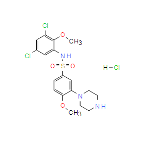 Smiles C(S(NC1=CC(Cl)=CC(Cl)=C1OC)(=O)=O)1=CC=C(OC)C(N2CCNCC2)=C1.[H]Cl