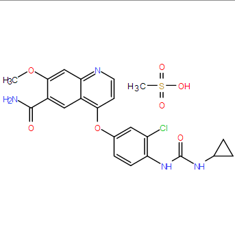 Smiles ClC1C([H])=C(C([H])=C([H])C=1N([H])C(N([H])C1([H])C([H])([H])C1([H])[H])=O)OC1C([H])=C([H])N=C2C([H])=C(C(C(N([H])[H])=O)=C([H])C=12)OC([H])([H])[H].S(C([H])([H])[H])(=O)(=O)O[H]
